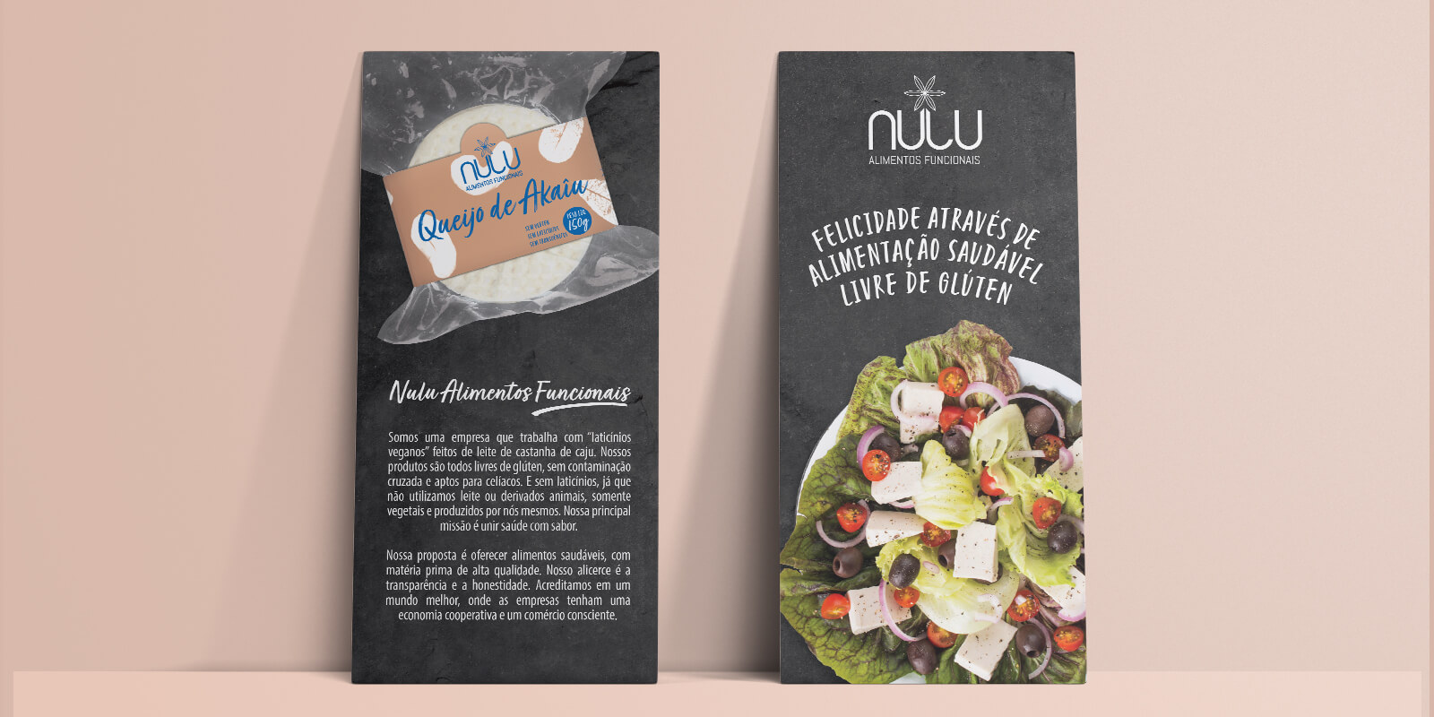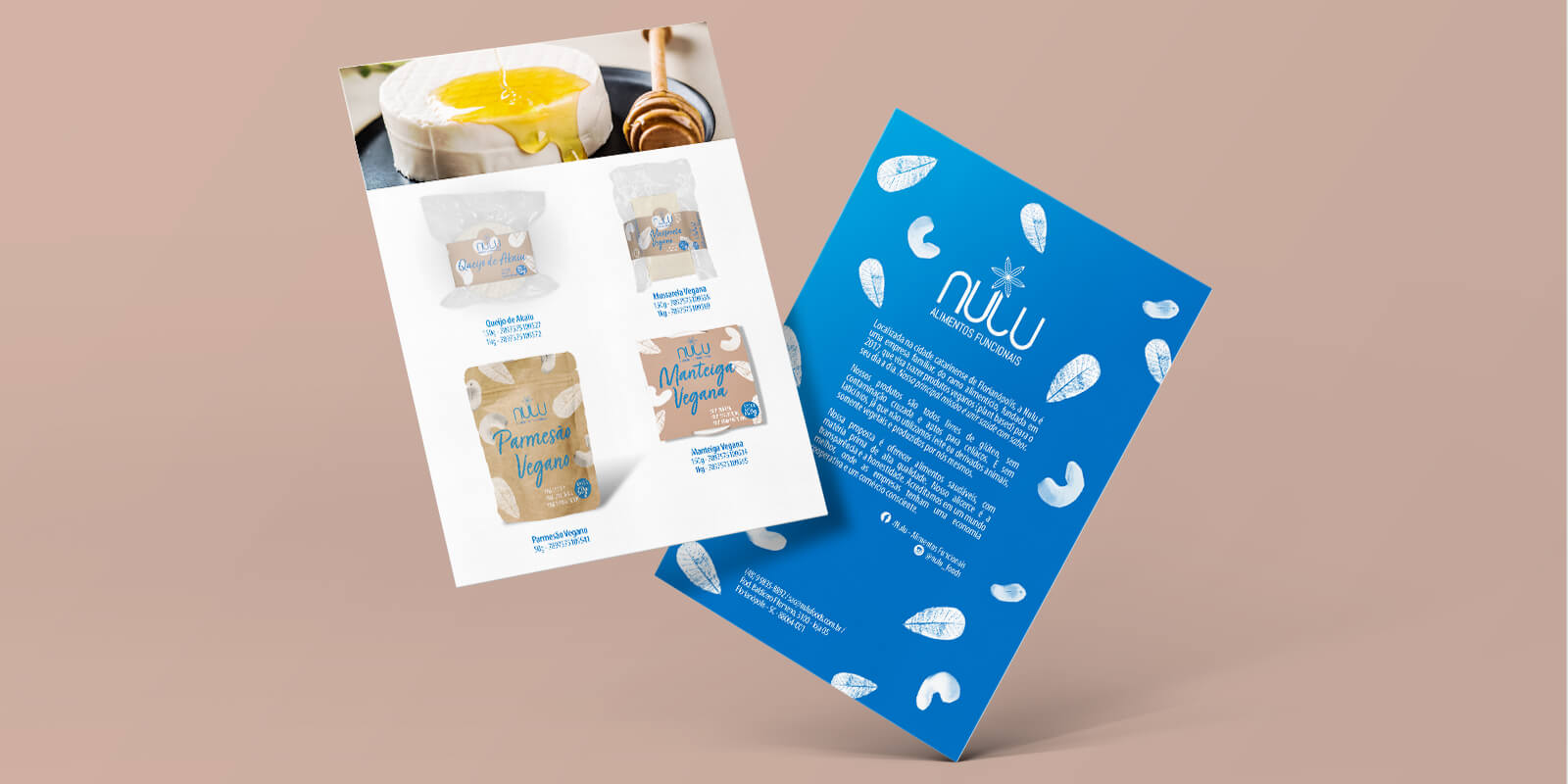 A Nulu Alimentos Funcionais é uma produtora local de queijos e manteiga veganos. O primeiro projeto para a Nulu foi o redesign de suas embalagens. Além de ser desenvolvido novos rótulos, o layout marcou a nova linguagem visual para a marca.