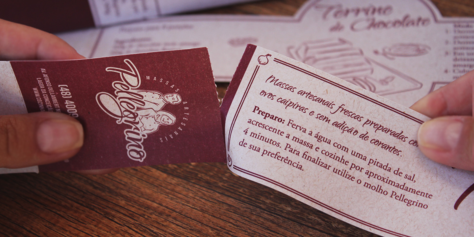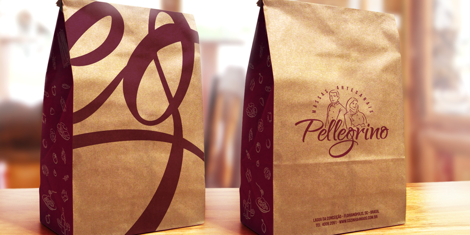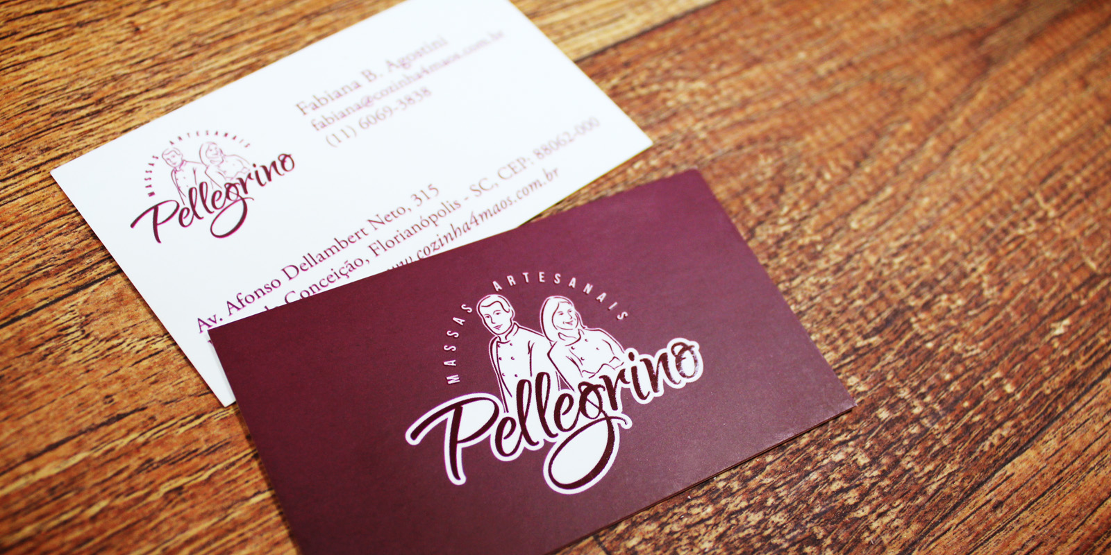 Um restaurante que se diferencia por suas massas artesanais e molhos feitos com os melhores ingredientes. Assim surgiu a marca Pellegrino. O renomado casal de chefs e proprietários virou símbolo do restaurante, assinando a qualidade de seus produtos. Toda a identidade visual foi trabalhada com apenas uma cor, de forma elegante e sofisticada, permeando o espaço do restaurante e os materiais de apoio.