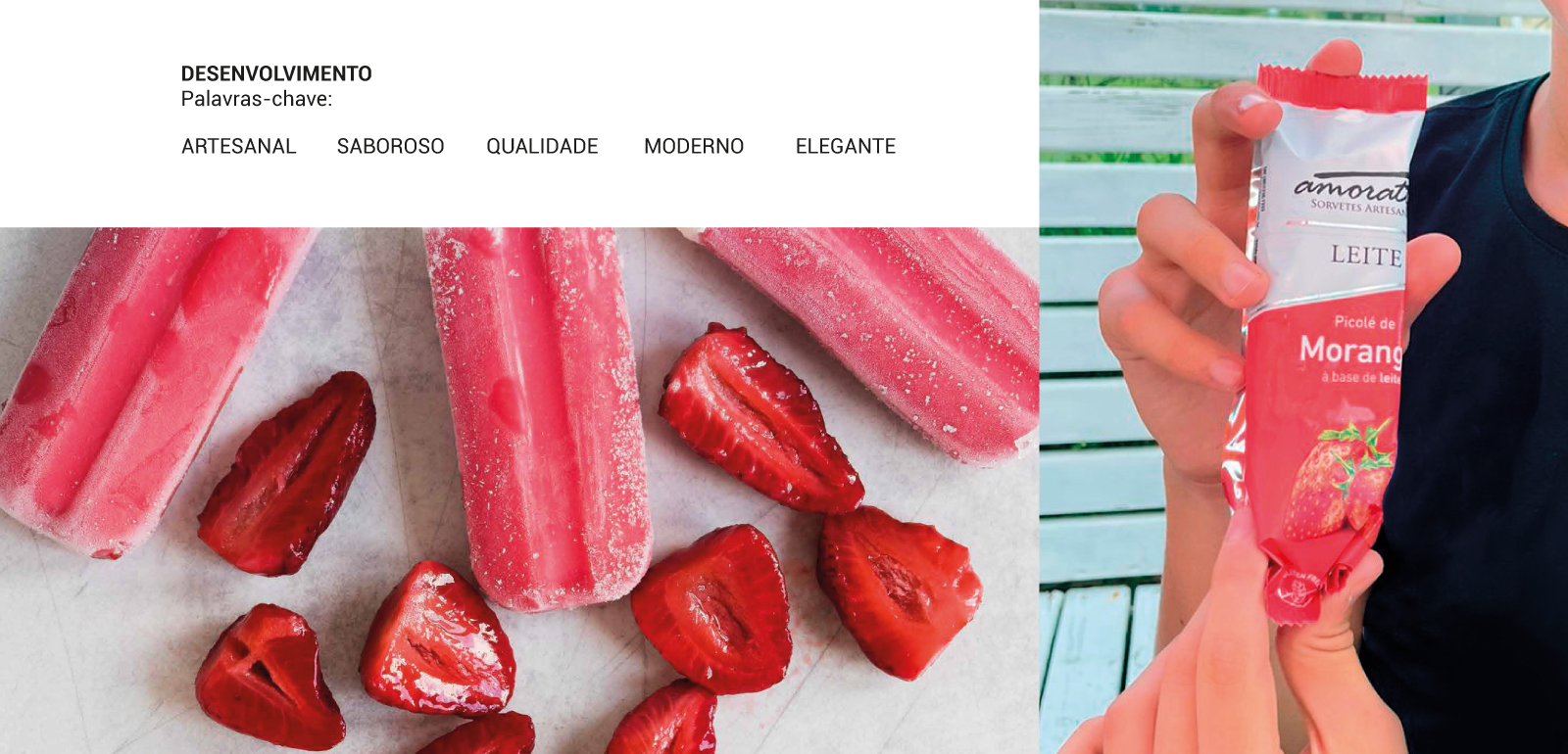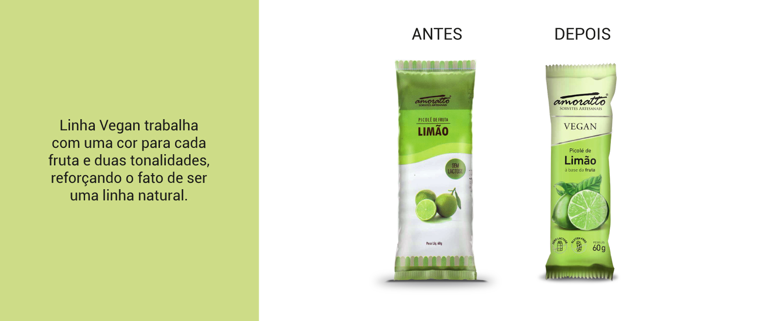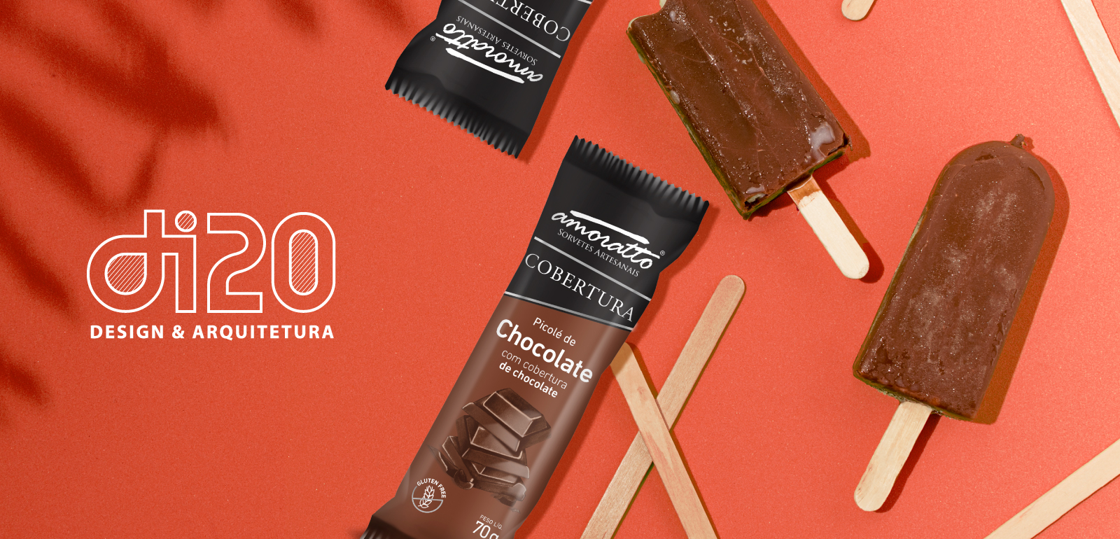 Embalagem de Sorvete.A Amoratto entrou em contato depois que perceberam a necessidade de modernizar os rótulos dos picolés de acordo com a nova identidade visual das embalagens. Seus picolés são um produto de alta qualidade, artesanal e premium, mas as embalagens antigas não o estavam comunicando. Concorrentes da empresa começaram a ganhar espaço no mercado com preços concorrentes. A Amoratto, em reação, decidiu que estava na hora de concorrer com qualidade expressa em suas embalagens e por isso se voltou à Di20, para modernizar os rótulos.