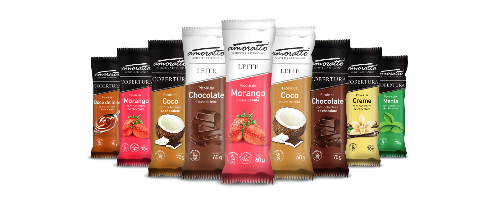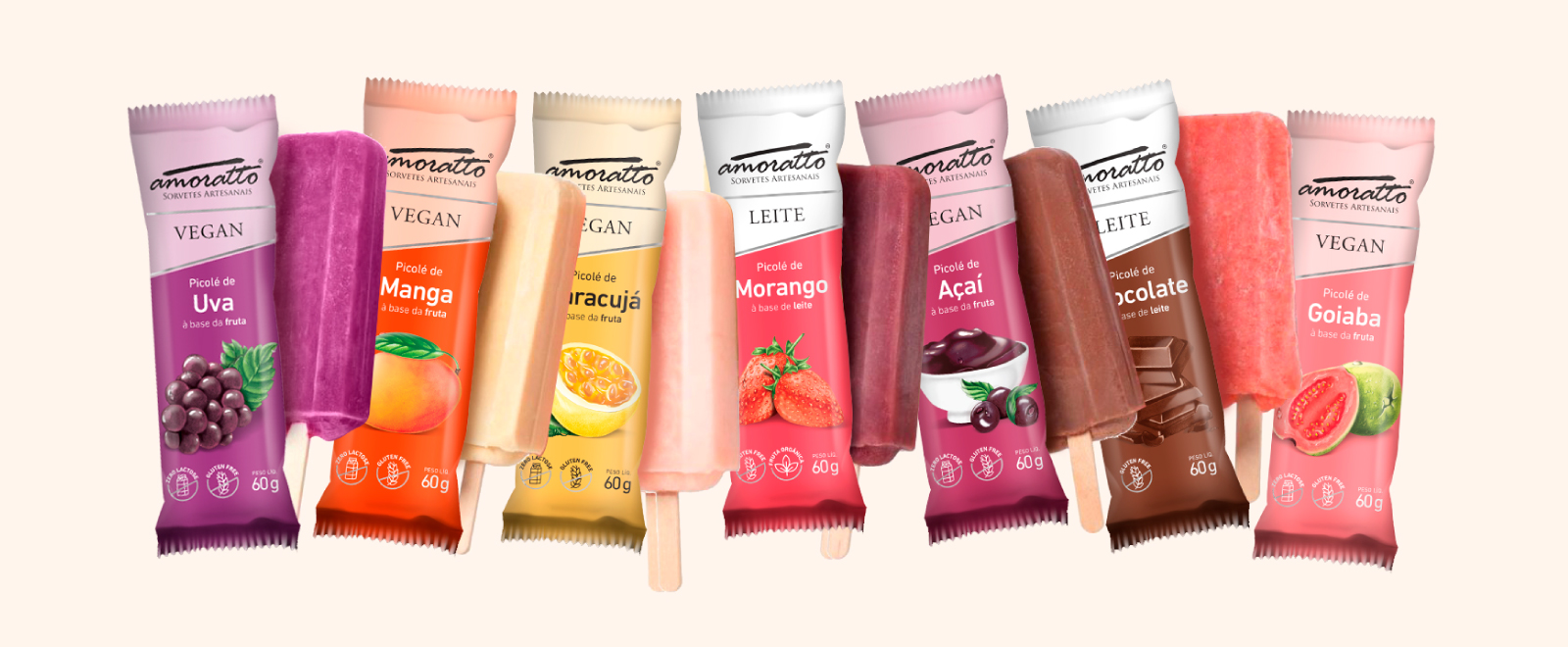 REDESIGN DOS RÓTULOS DE PICOLÉS DA AMORATTO.