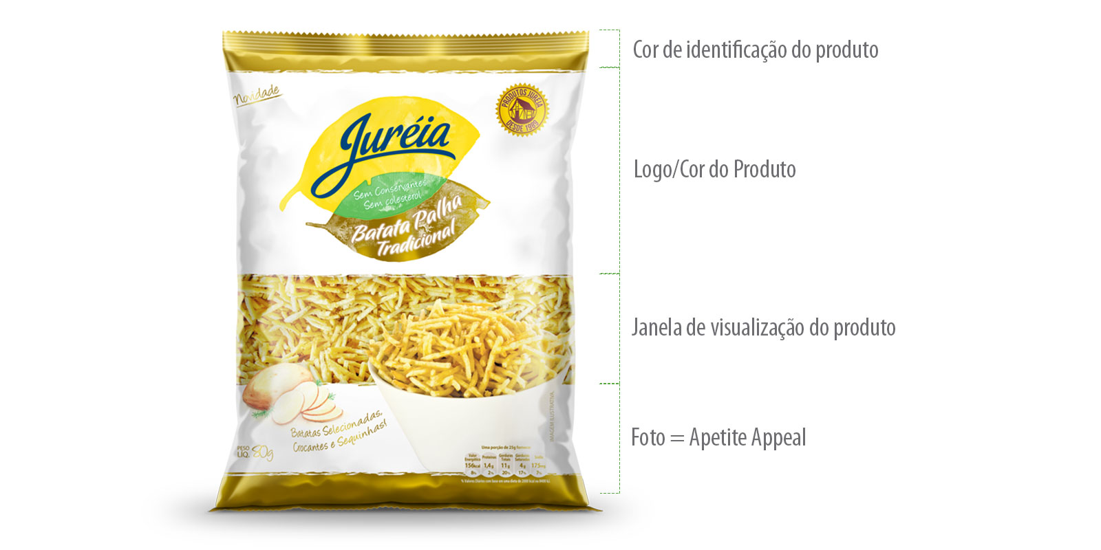 A casinha alemã, elemento característico e tradicional da marca, foi reformulada em forma de selo de tradição, agregando valor premium à embalagem e reforçando a herança cultural que diferencia a Juréia no mercado.
