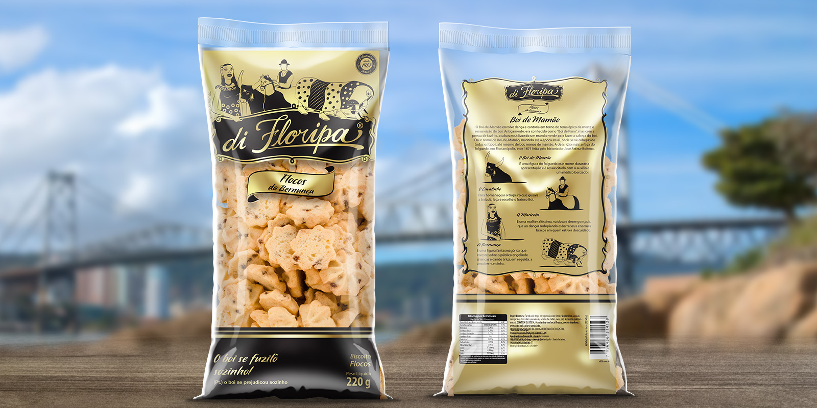 Florianópolis é um polo turístico reconhecido internacionalmente com uma cultura e tradição fortes, valorizada tanto pelos residentes quanto por seus visitantes. A cultura manezinha tem sua própria linguagem, tradições e fazem parte do folclore local. Pontos turísticos, tradições e locais da cidade são icônicos e de fácil reconhecimento. Estes pontos foram utilizados na ilustração das embalagens: a ponte Hercílio Luz, as rendeiras, as bruxas da ilha, os pescadores, os esportes aquáticos, as dunas da Joaquina, entre outros.