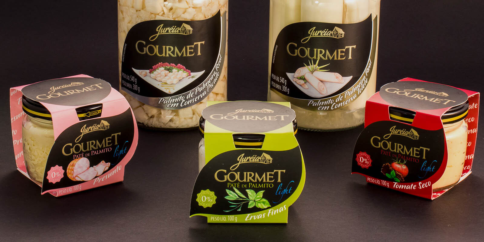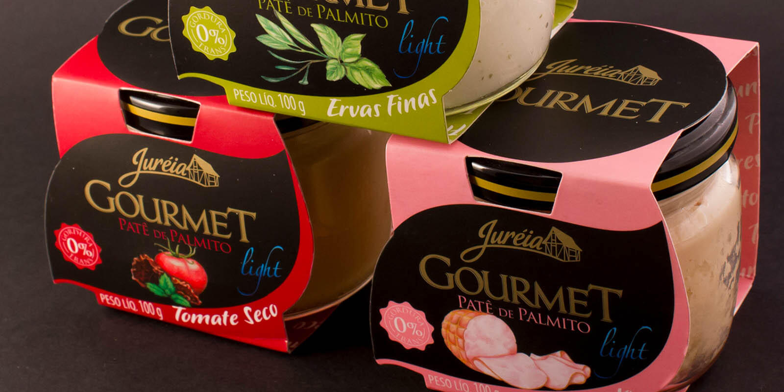Projeto de design de embalagem e rótulo e reposicionamento da marca Juréia para sua linha de conservas e patês Gourmet. Pesquisas de tendência revelaram uma oportunidade de mercado nichado para produtos premium, sendo assim desenvolvida a linha gourmet para alcançar esse consumidor exigente por qualidade.