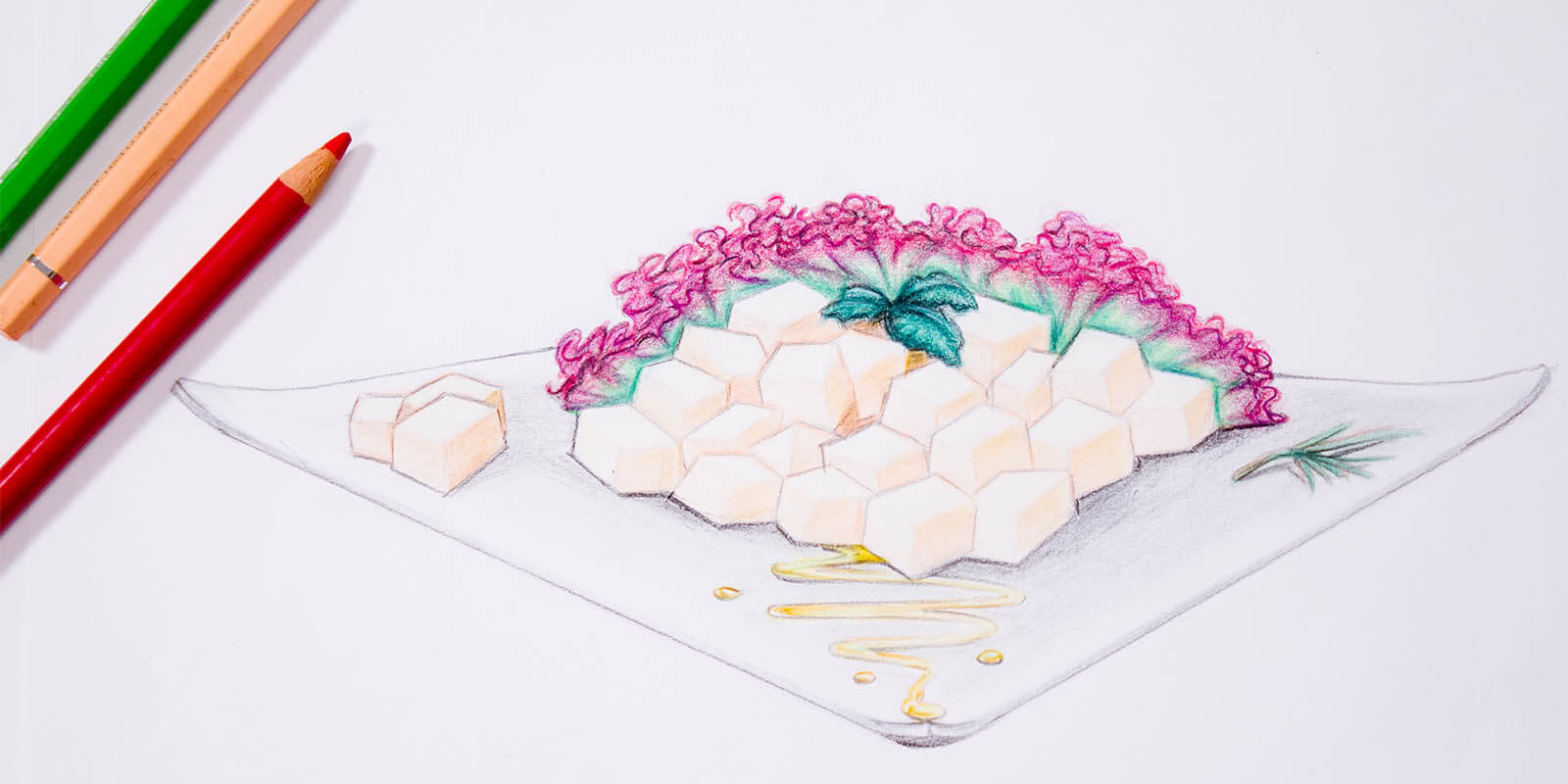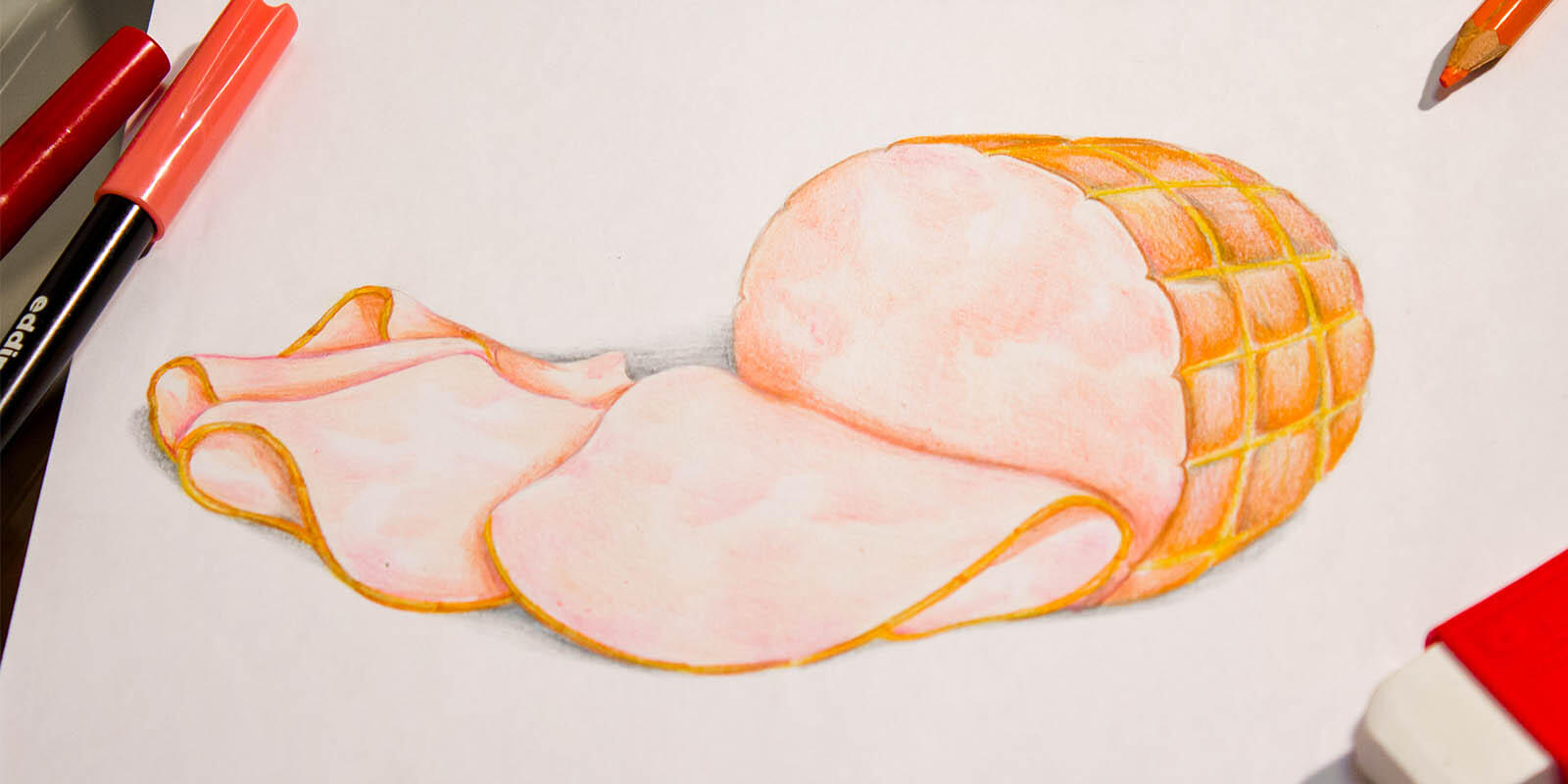 As cores secundárias - vermelho, rosa, verde - fazem referência aos sabores mais suaves, e portanto diferenciam a linha dos patês lights. Para comunicar o cuidado da seleção dos produtos, e assim evidencia-lo como superior, foram utilizadas ilustrações feitas à mão, pintadas em papel levemente texturizado, e a sensação do aveludado transmitindo a delicadeza do sabor.