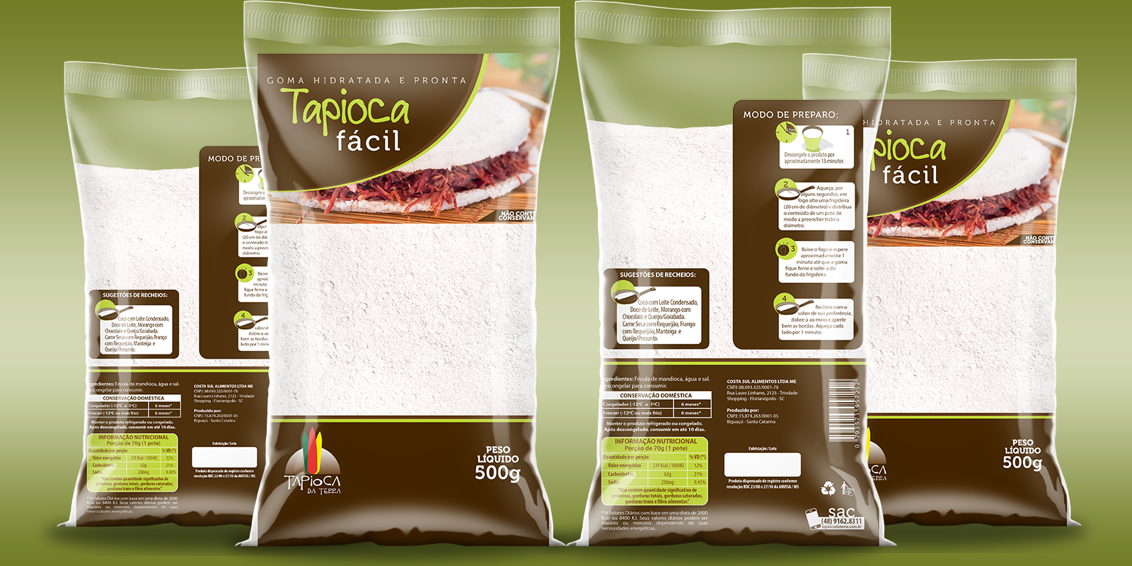 A embalagem deve refletir o caráter moderno e sofisticado que a tapioca têm ganho.