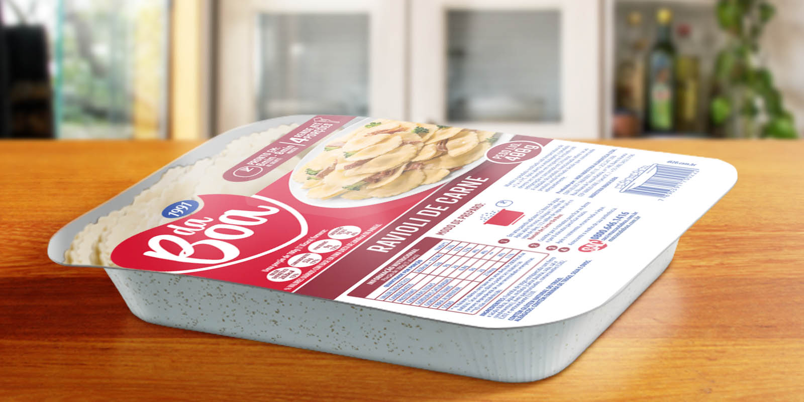 A linha de produtos também se estende para as bandejas de massas, em que todo o design está localizado na frente da embalagem.