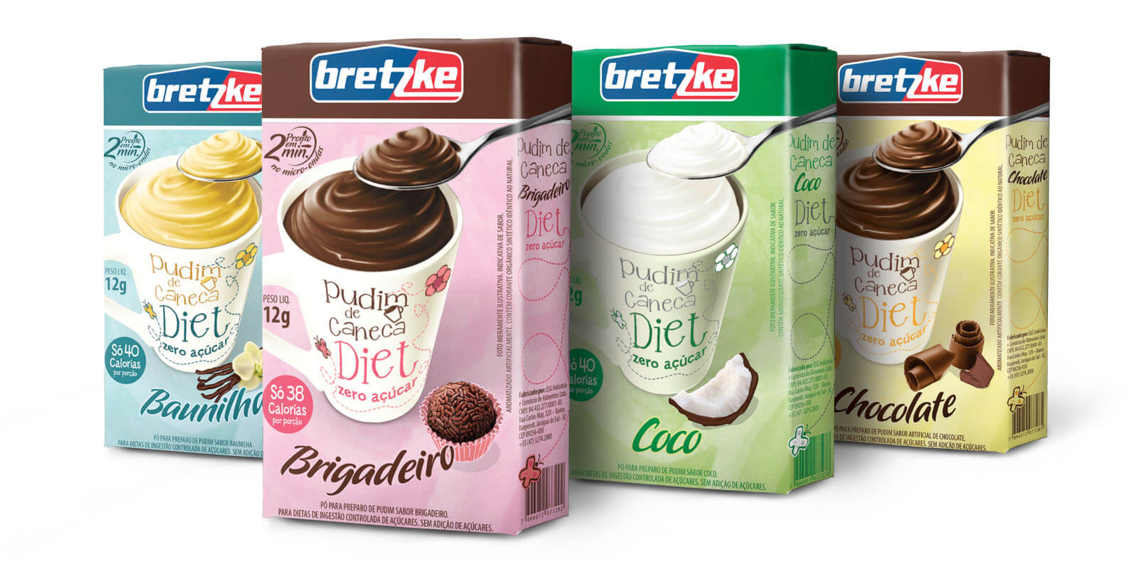 Desenvolvimento de design de embalagem de Pudim de Caneca da marca Bretzke. O projeto tem como objetivo fortalecer a marca por meio de capricho nas embalagens para enfrentar os líderes de mercado e concorrentes mais jovens. Foram visitadas redes varejistas e lojas especializadas em doces. Durante a pesquisa não teve demanda pelo produto sendo os procurados ainda somente gelatina.