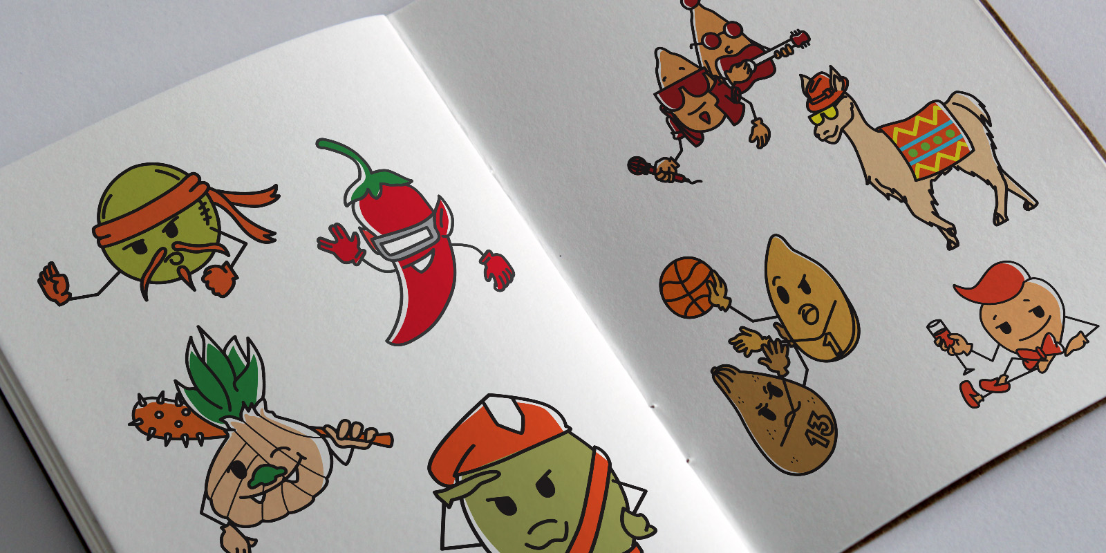 Uma ilustração feita com linhas e preenchimento com cores mais vivas que as do fundo, foca no lado rústico, artesanal e delicado.