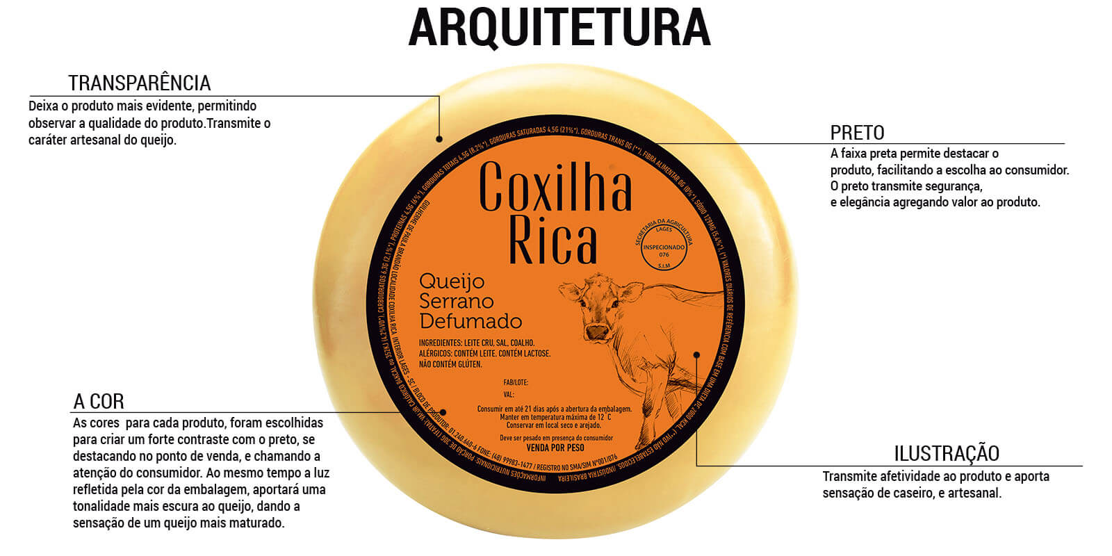 Projeto de redesign de embalagem de queijos artesanais da marca Coxilha Rica, empresa produtora de queijo artesanal da região serrana de Santa Catarina. O projeto tem como objetivo agregar valor ao produto através de um embalagem mais gourmet, de qualidade superior artesanal. Assim, o design deve ser moderno e atual, além de transmitir tradição sob foco da origem do produto e da produção serrana.