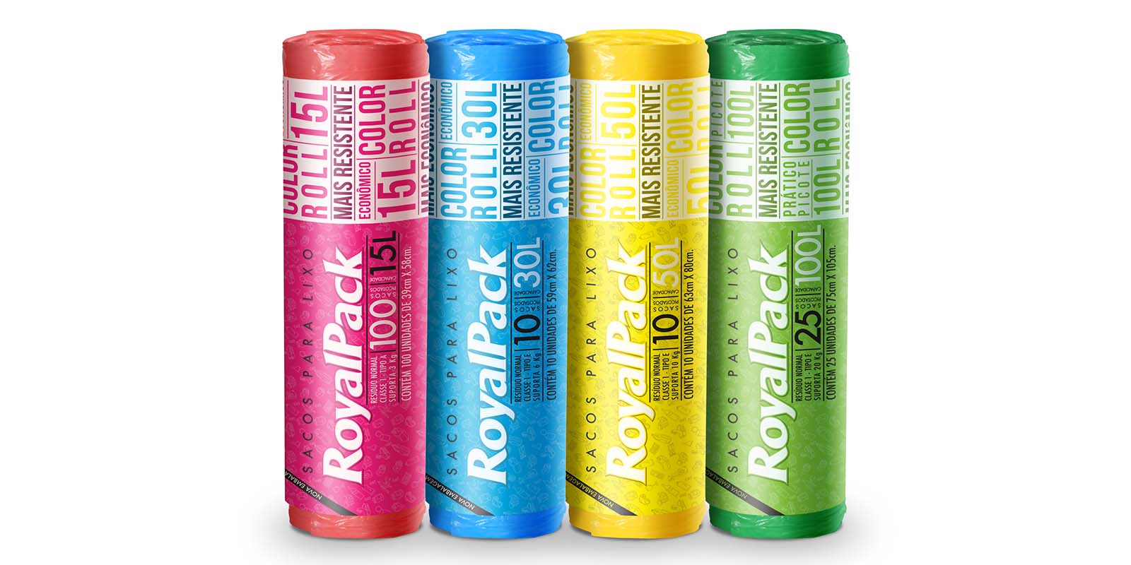 Design de embalagens para sacos de lixo projetadas em papel para a empresa Royal Pack. A utilização de papel em lugar de plástico deu como resultado uma redução de mais de 100Kg por ano. Este projeto foi premiado no Grandes Cases de embalagem e finalista na Bienal Iberoamericana de Design.