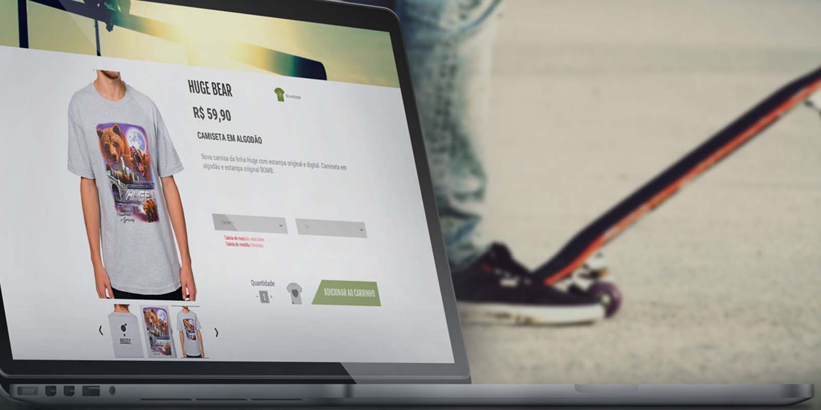 A loja virtual de camisetas com estampas é baseada na cultura urbana e voltada para skatistas e simpatizantes. O site apresenta um sistema iconográfico feito através de inspirações retiradas da cultura dos skatistas com o objetivo de criar uma maior relação com o público alvo.